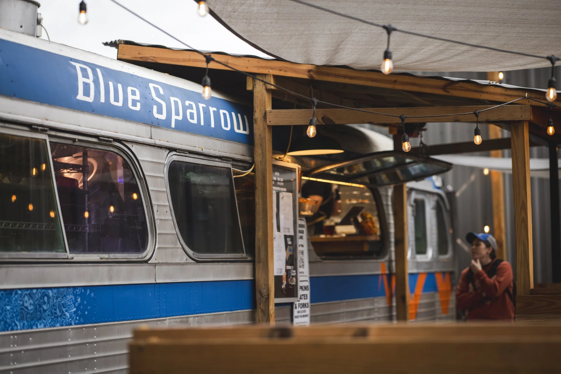 The Blue Sparrow Bus is permanently parked at Dancing Gnome Brewery, 1025 Main Street Pittsburgh PA 15215